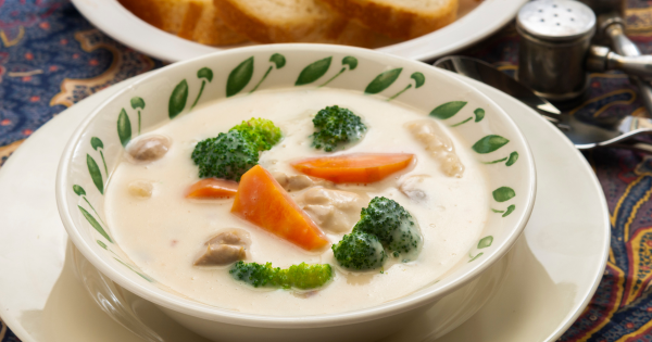 野菜がやわらかくなったらコンソメと生クリームを加え、とろみがつくまで煮る。