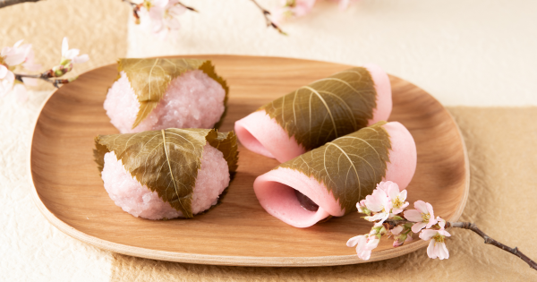 また「桜餅」は春を代表する餅菓子で、桜の葉で包んだ餅にあんこを包んでおり、地域によって関東風(長命寺)と関西風(道明寺)があります。