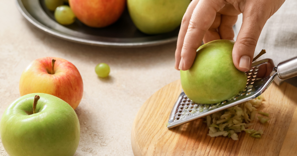 りんごをすりおろしたものは、自然な甘みと水分を加えながら卵の代用になります。あっさりとした風味で、バナナほど主張しすぎないのが特徴です。季節感のある味わいを楽しみたいときにもおすすめです。