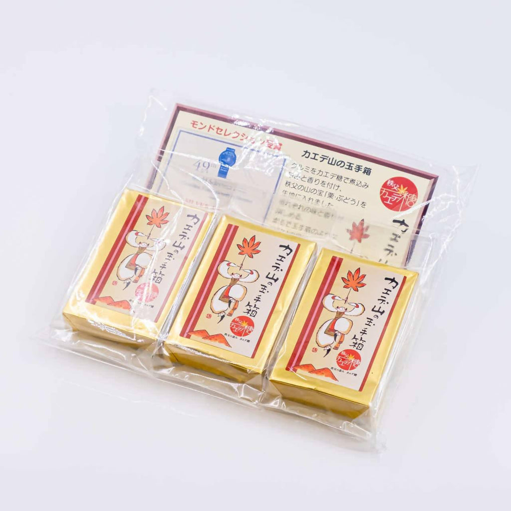 スポンジの中には、秩父の恵み「栗、ぶどう、うぐいす豆」を入れ それぞれの味が楽しめる、まるで玉手箱のようなお菓子です。