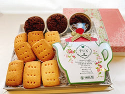 ■紅茶 ムレスナティーのやさしい味わいのフレーバーティーを、ティーポットのかわいいパッケージに入れました。 りんご・マンゴー・杏などのフルーツにメープルを合わせた華やかな香りのフレーバーティーです。 ■チョコブラウニー バニラ風味の濃厚なチョコレート生地にチョコチップをたくさん入れたチョコ好きの方に是非おススメのお菓子です。 ■ショートブレッド 素材の香りをしっかりと味わえるようにバター・小麦粉・砂糖・塩と東京八王子産の新鮮卵の濃厚な卵黄を加えたシンプルなレシピで作られたバタークッキー。 ザクザクと食べ応えのある分厚い食感がクセになるおいしさです。