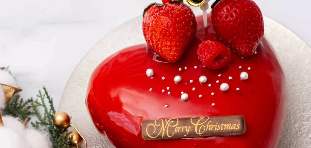 2人の聖夜を飾る、優しいクッションの上に真っ赤なハートのクリスマスデコレーションケーキです。