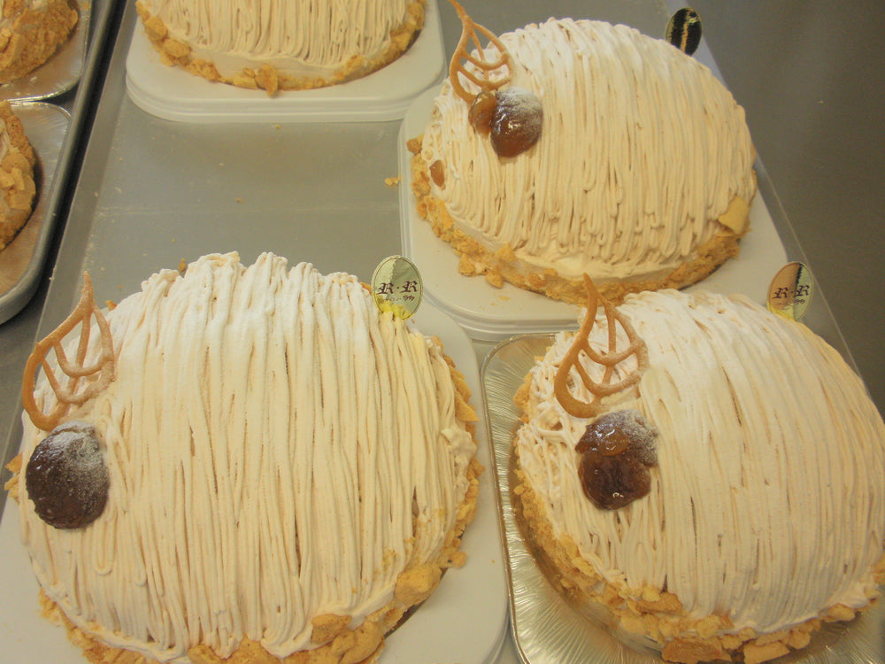 洋菓子専門店の正統派モンブランケーキには、フランスの工場まで見せてもらったサバトン社のクレーム・ド・マロンと低脂肪純生クリームを丁寧に混ぜ合わせたクリームを約45+125本、絞り出して仕上げてます。