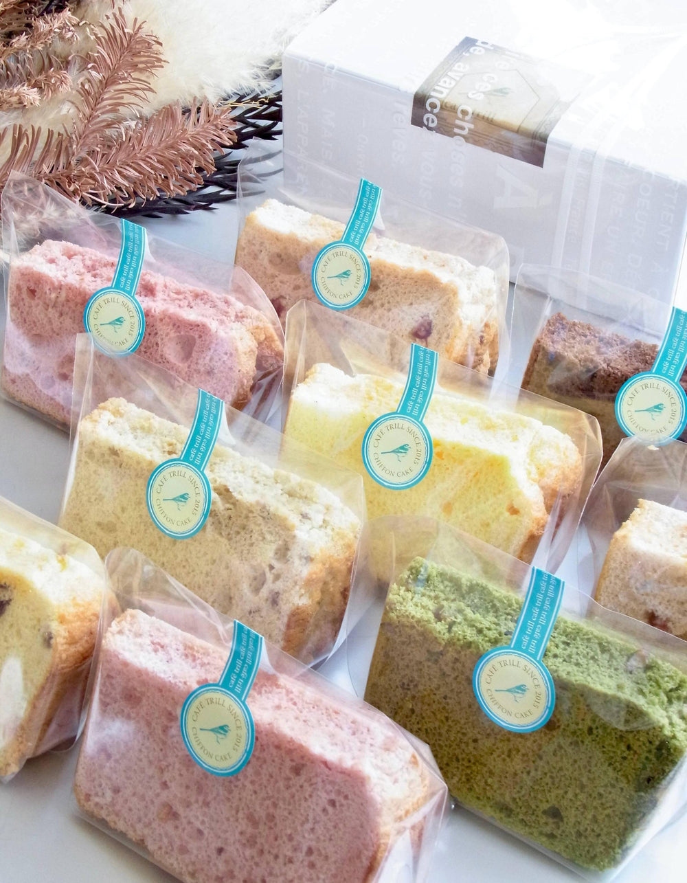 ふわふわ食感が贈り物にぴったり!カフェトリルのシフォンケーキBOX、5種・8種から選べる贅沢詰め合わせ♪