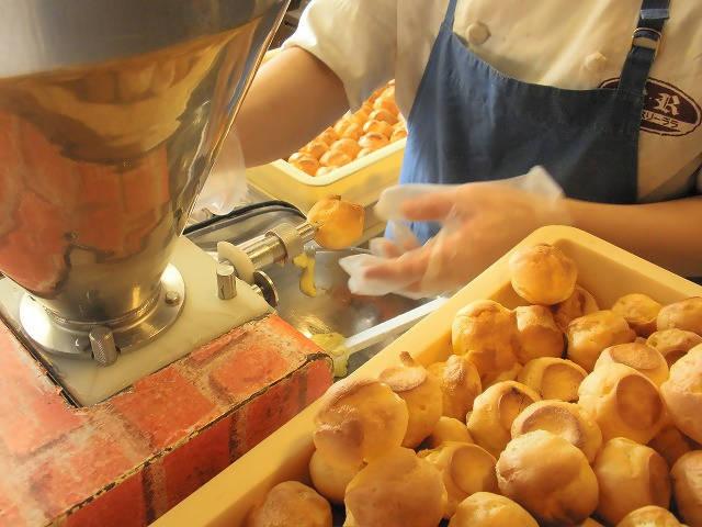 中はカスタードクリームで直径にして4cm位のボール状です。「ポンッ」と一口でいくつでも食べれてしまいますよ。