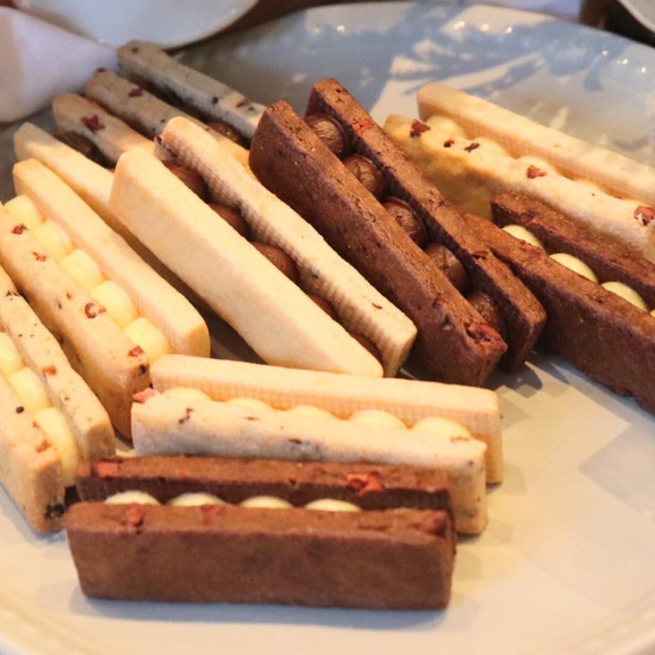 - やさしい味わいのクッキーに合わせるバタークリームは、コクのある卵黄ベース、軽やかな卵白ベースの2種類のクリームを合わせて手間暇かけて作っています。