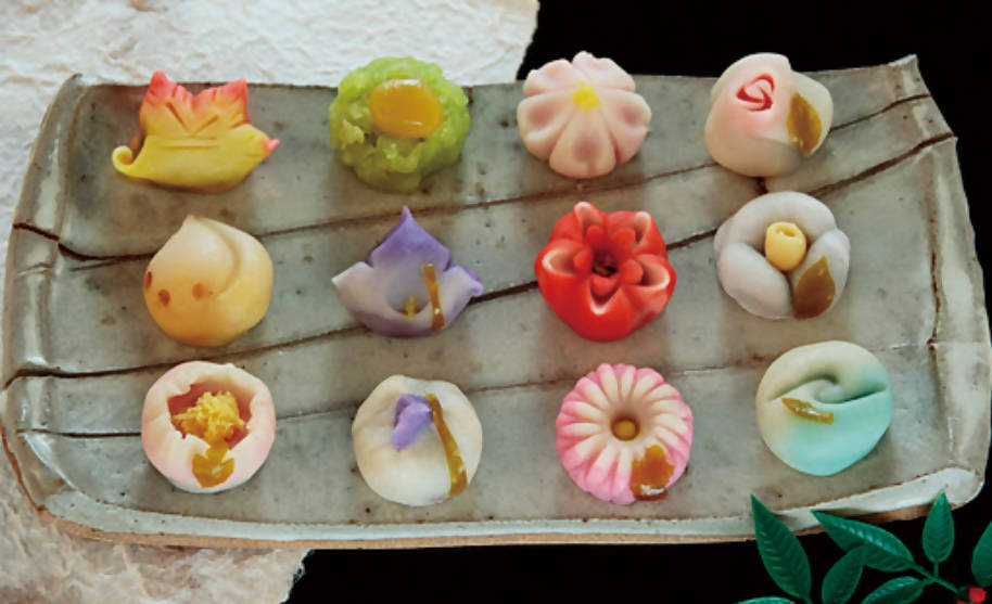 - 季節に応じた、見た目にも華やかな上生菓子です。常時10種類以上そろえています。