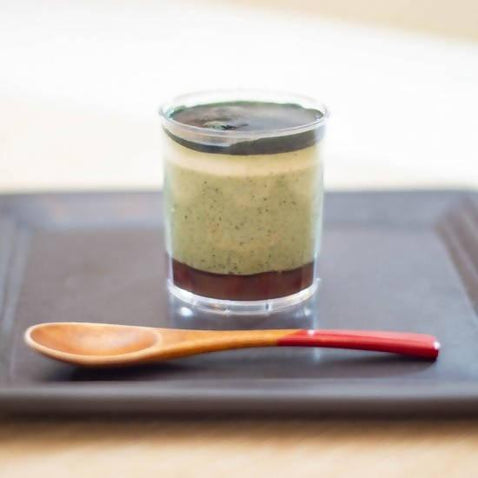 - 石臼で丹念に挽き上げた宇治抹茶とふっくら大粒の北海道産大納言小豆を使用したスイーツです。