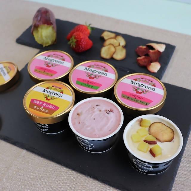 自社農園のいちごとさつま芋、そして地元の産地限定牛乳を使ったケーキのようなアイスのセットです。