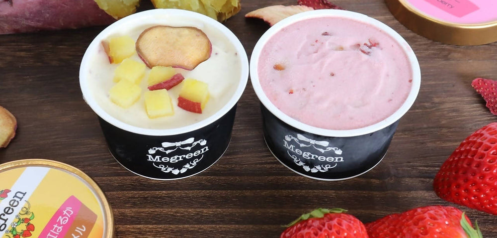 - 自社農園のいちごとさつま芋、そして地元の産地限定牛乳を使ったケーキのようなアイスと体温が素早く伝わり、アイスにすっと入る魔法のスプーン、WARM TECH SPOONのセットです。