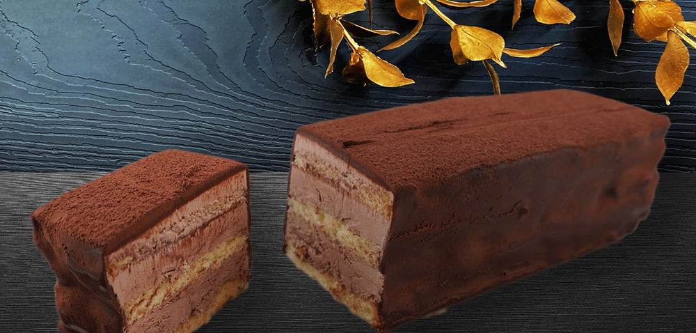 スポンジとチョコクリームの6層構造と、ビターに仕上げたコーティングチョコが、舌の上で調和します。