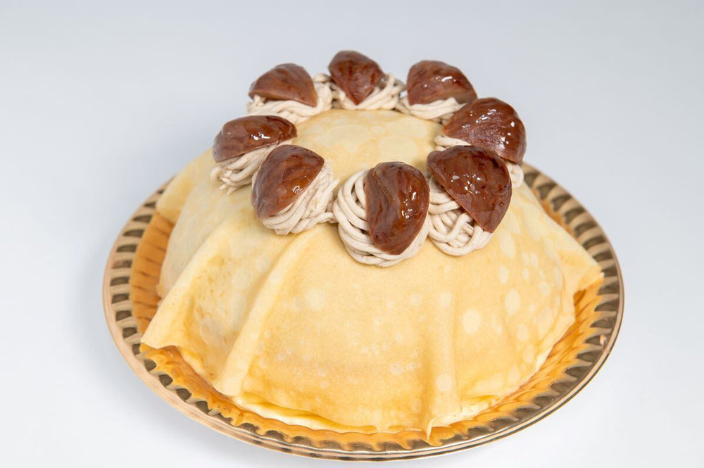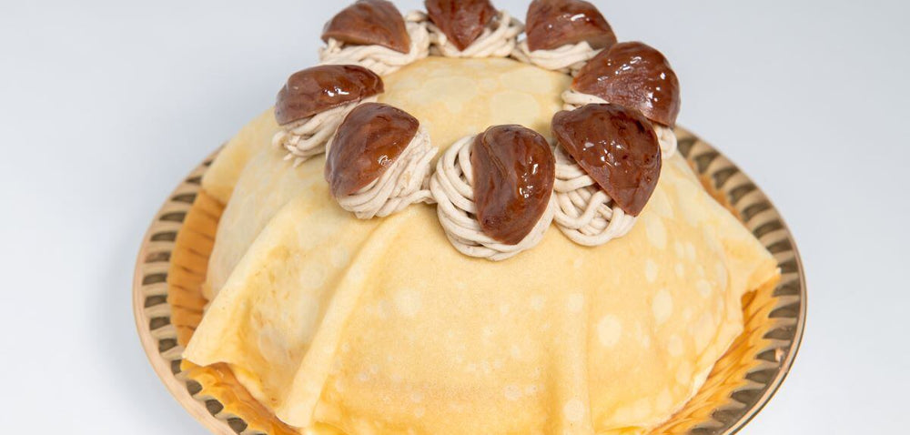 ホイップクリーム、須木栗クリームをクレープで包み、さらに栗の甘露煮をのせた