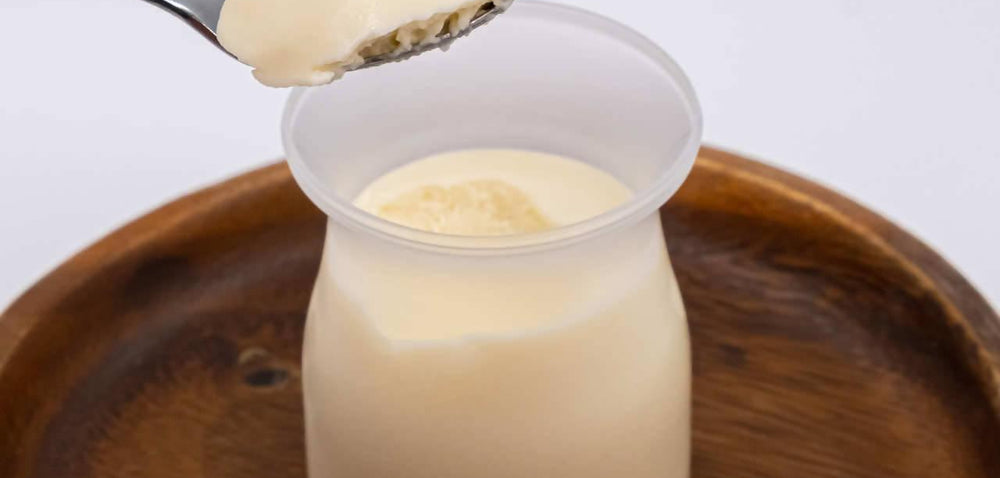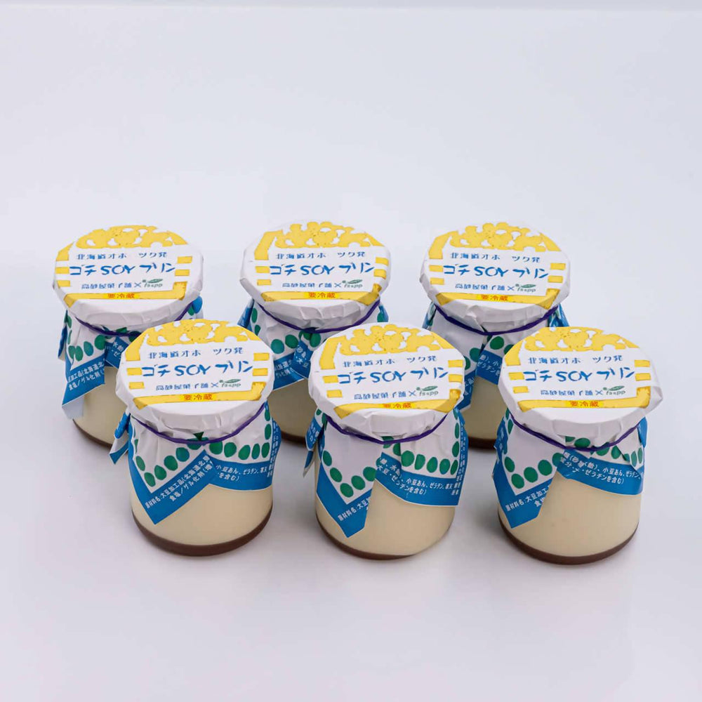 牛乳や豆乳ではなく、粉砕した北見産大豆「とよみづき」にホイップした生クリームを混ぜこみ、ババロアのように軽い食感の自然な優しい甘みのプリンに仕上がりました。