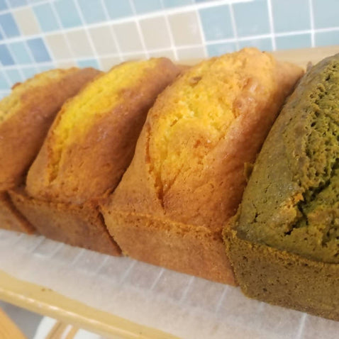 ▶︎パウンドケーキ;バター(国産)、小麦粉、グラニュー糖、卵、かぼちゃパウダー、安納芋パウダー、ほうれん草パウダー、ベーキングパウダー(アルミフリー)(一部に卵、乳、小麦を含む)