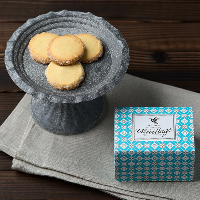 ブルボンバニラの芳醇な甘い香りと、さっくりとしたクッキー、食感のアクセントにザラメが加わり、止まらない美味しさに仕上がりました。