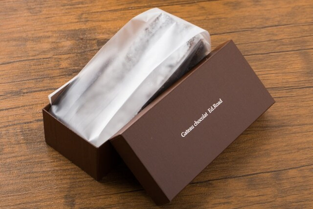 小麦粉を一切使用しないことで、濃厚で生チョコ半生食感に仕上げています。とろり食感ではなく、表面は香ばしく、中は、ねっとり濃厚です。