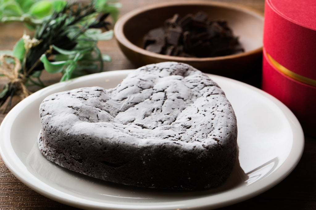 小麦粉を一切使用しないことで、濃厚で生チョコ半生食感に仕上げています。とろり食感ではなく、表面は香ばしく、中は、ねっとり濃厚です。