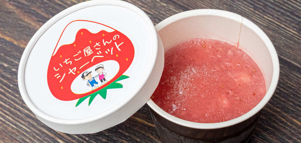 "贅沢な味わい、いちご100%の爽やかシャーベット"