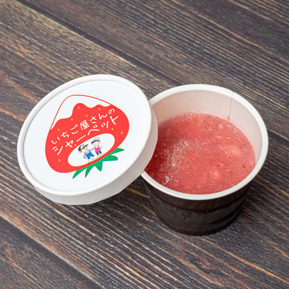 - 朝採りのアルプスいちごを100%使用した贅沢ないちごシャーベット。
