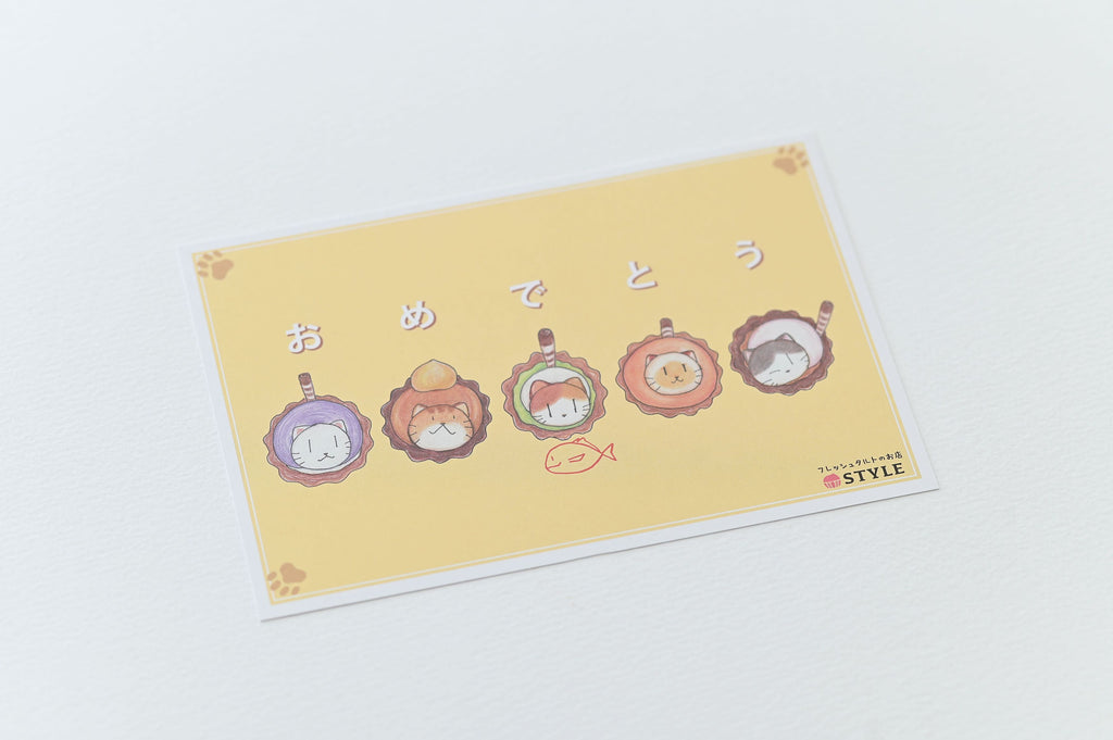・メッセージカード「おめでとう」ねこみにタルト柄