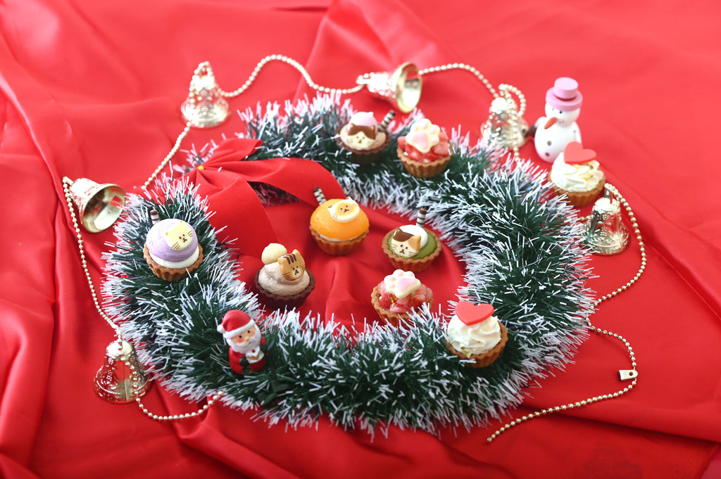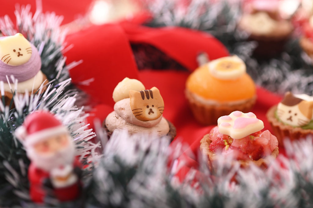 可愛い5匹のネコをあしらったミニタルトセットです。